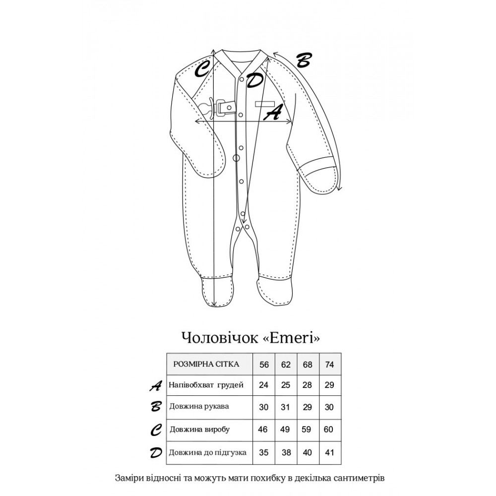 • В розмірах 56, 62 є відворотні царапки, а всі шви зовнішні, щоб не подразнювати ніжну шкіру малюка.