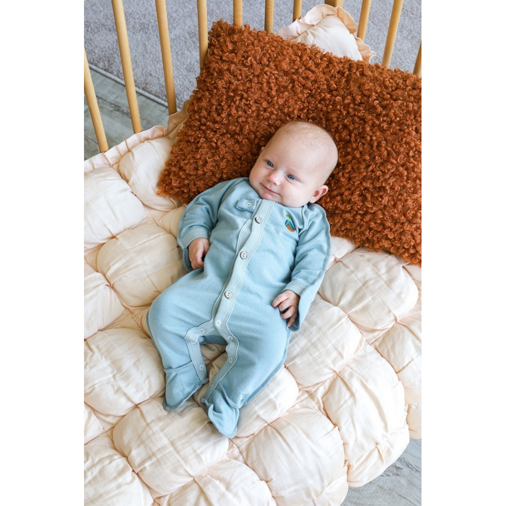 • Чоловічок застібається на ґудзики, а між ніжок — на кнопки, щоб було зручно змінити підгузок. До речі кнопки вироблені та сертифіковані в ЄС і не містять нікелю в складі.