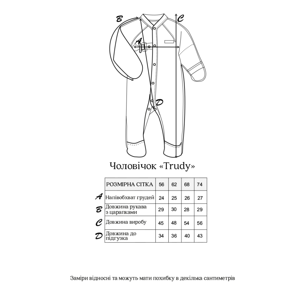 Доповнити комплект можна шапочкою та пелюшками Trudy.