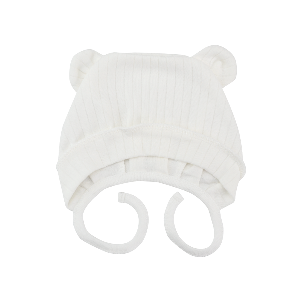 Чепчик 2510403 "Ведмежатко" молоко (з вушками), рубчик
