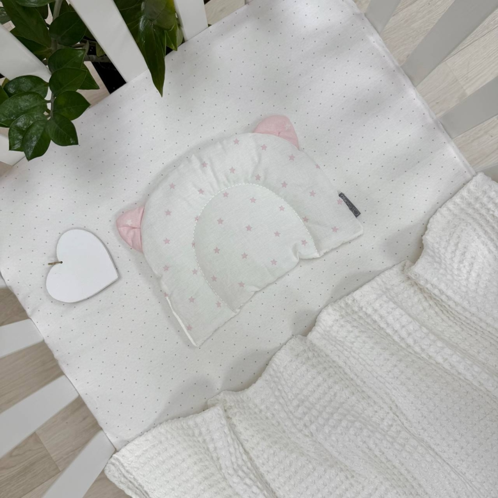 Подушка "Зірка рожева на білому" з вушками анатомічна