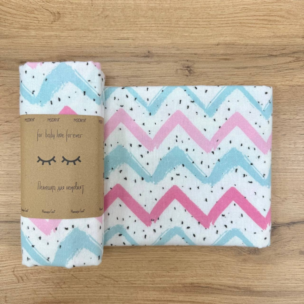 Пеленка Зигзаг фланель (100х80 см) розово-мятный
