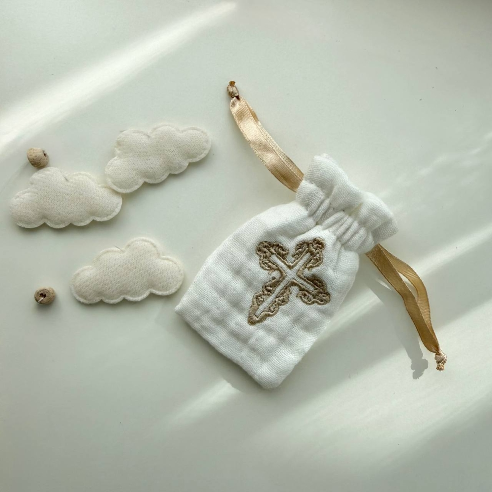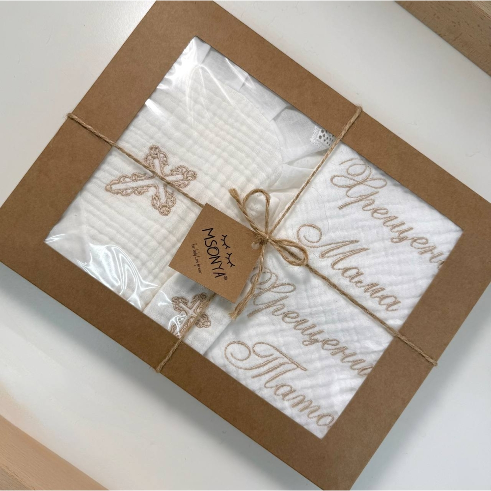 Набір для хрещення Елеганс муслін (крижма, серветки, мішечок) 100х80 см