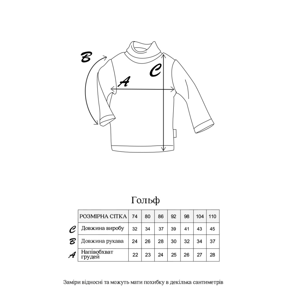 Гольф має подвійну горловину, що надійно закриває шию дитини від вітру. Дуже практично для діток, які не люблять шарфи та снуди.