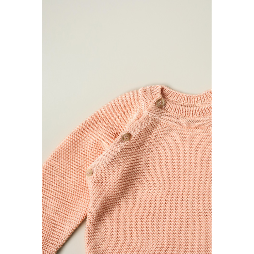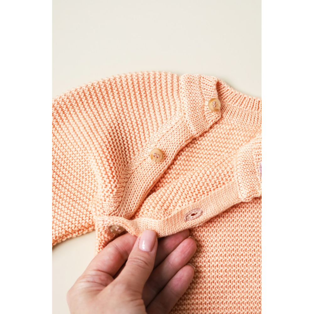 Ґудзики на плечику допомагають легко одягнути светрик, навіть якщо малюк сьогодні не в настрої вдягатися в принципі. Спинка трохи подовжена, зручні розрізи по боках і охайна нашивка роблять модель дуже акуратною та «дорослою» на вигляд.