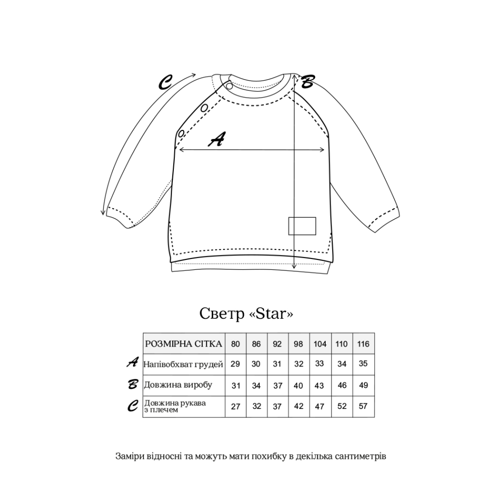 Саме такий светрик ви й шукали. Светр Star — затишний, м’який, ніжний і справді чарівний. Текстурна в’язка додає йому особливого зимового шарму: якраз сидіти під ялиночкою та приймати подарунки від казкових ельфів.