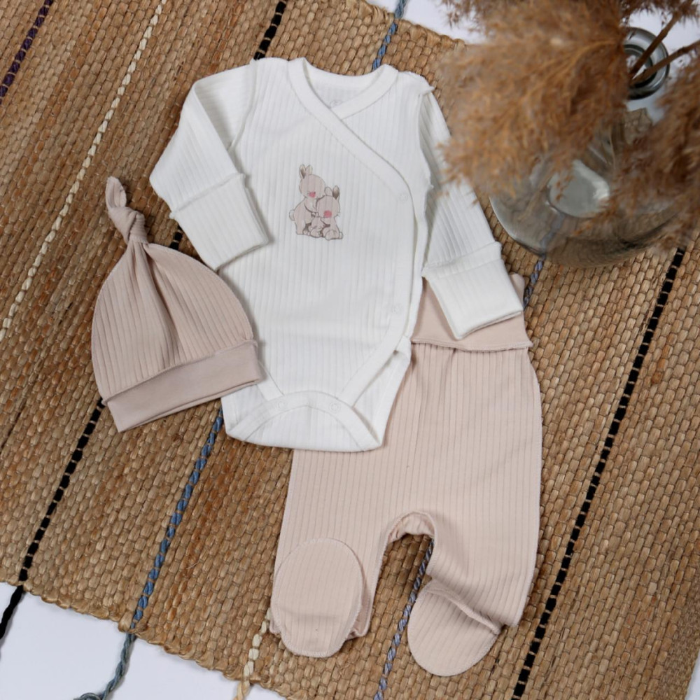 Комплект 433-106 молоко/беж (боді, повзуни, шапочка), інтерлок рубчик