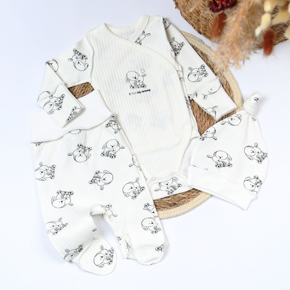 Комплект 433-118 Зайченя молоко (боді, повзуни, шапочка), інтерлок рубчик