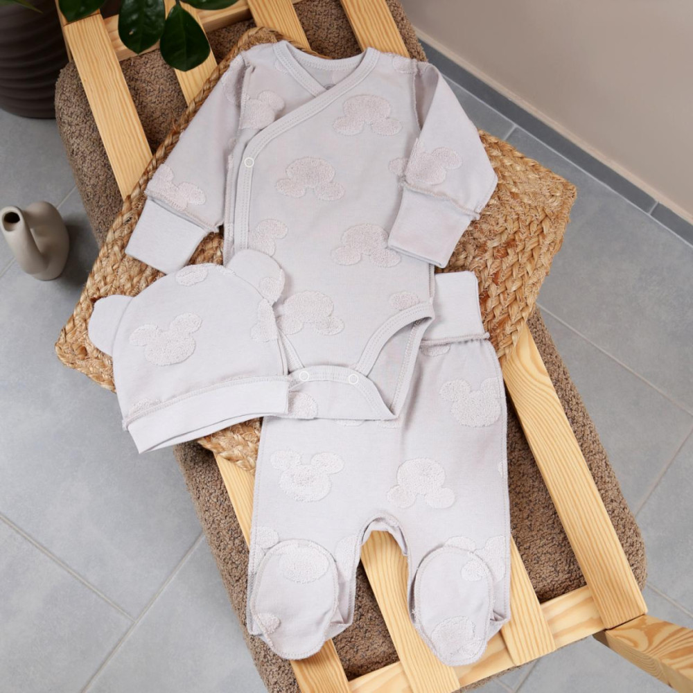 Комплект 561-934 Mickey сірий (боді, повзуни, шапочка), інтерлок
