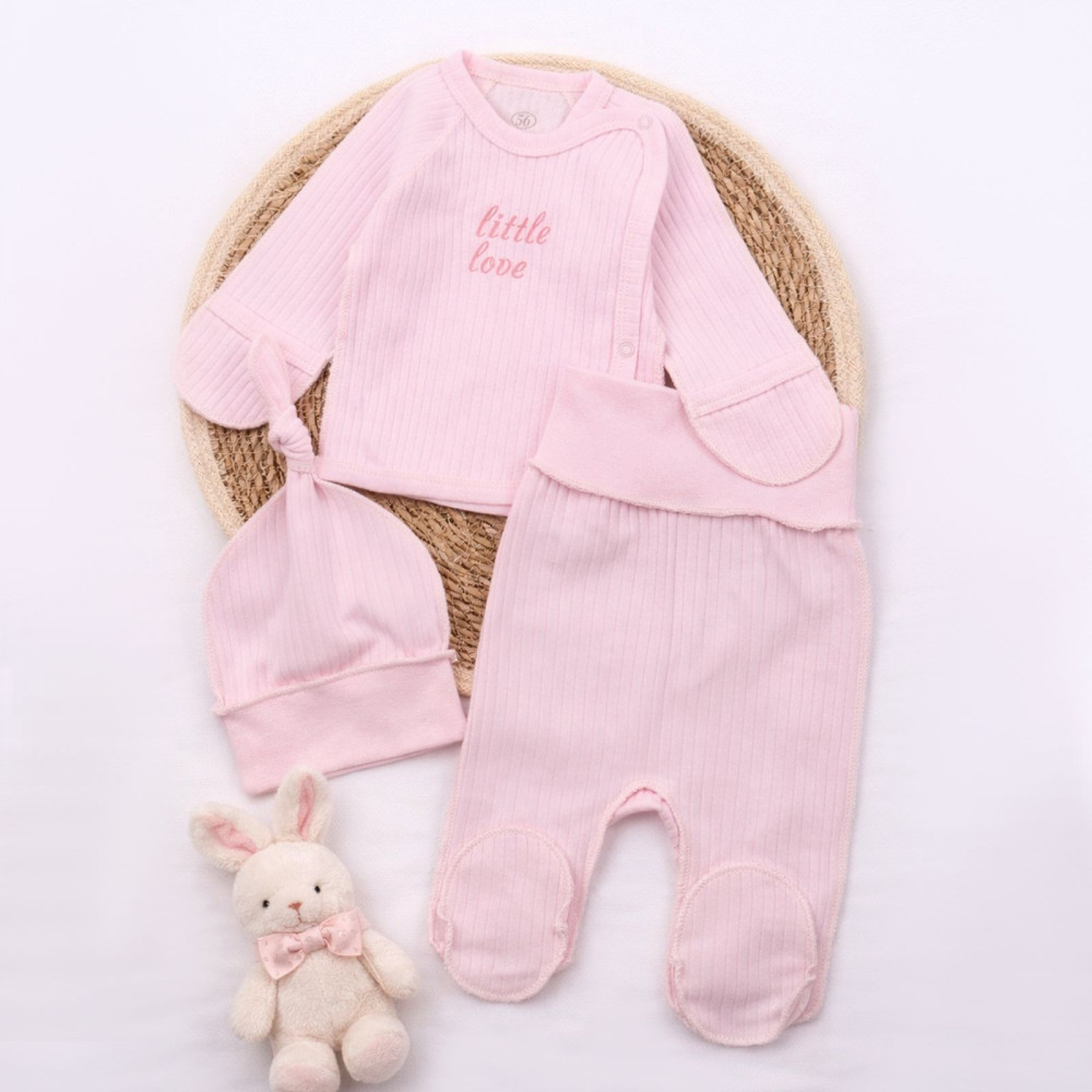 Комплект 224-106 рожевий (льоля, повзунки, шапочка), рубчик