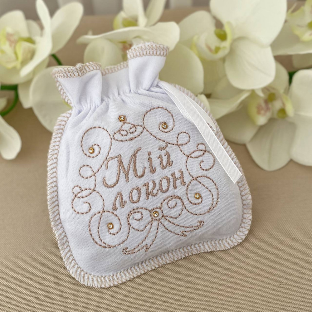 Мы предлагаем очень качественный и оригинальный мешочек с удобной кулиской - в таком варианте локон будет не только надёжно сохранен, но и красиво оформлен.