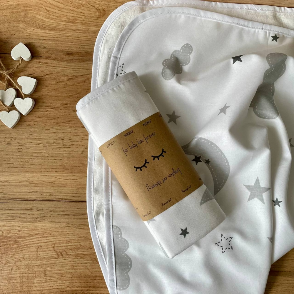 Непромокаюча пелюшка Хмаринки сірі з місяцем (50 на 80 см) поплін/мембрана