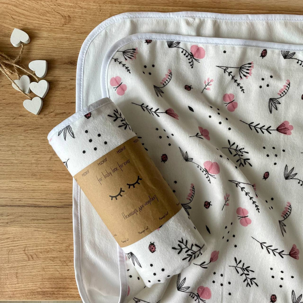 Непромокаюча пелюшка тепла Гілочки рожеві (50 на 80 см) фланель/мембрана