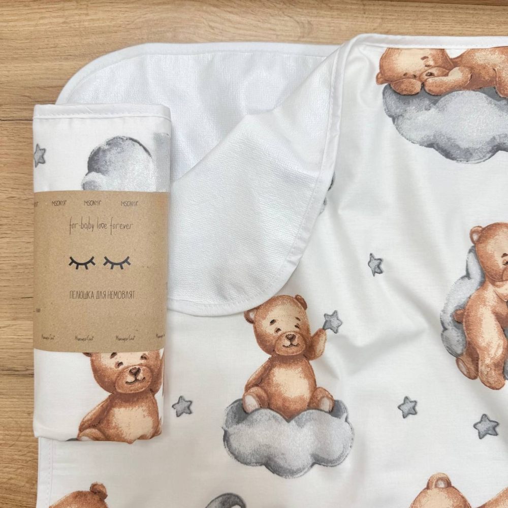 Непромокаюча пелюшка Тедді сірий (50 на 80 см) поплін/мембрана