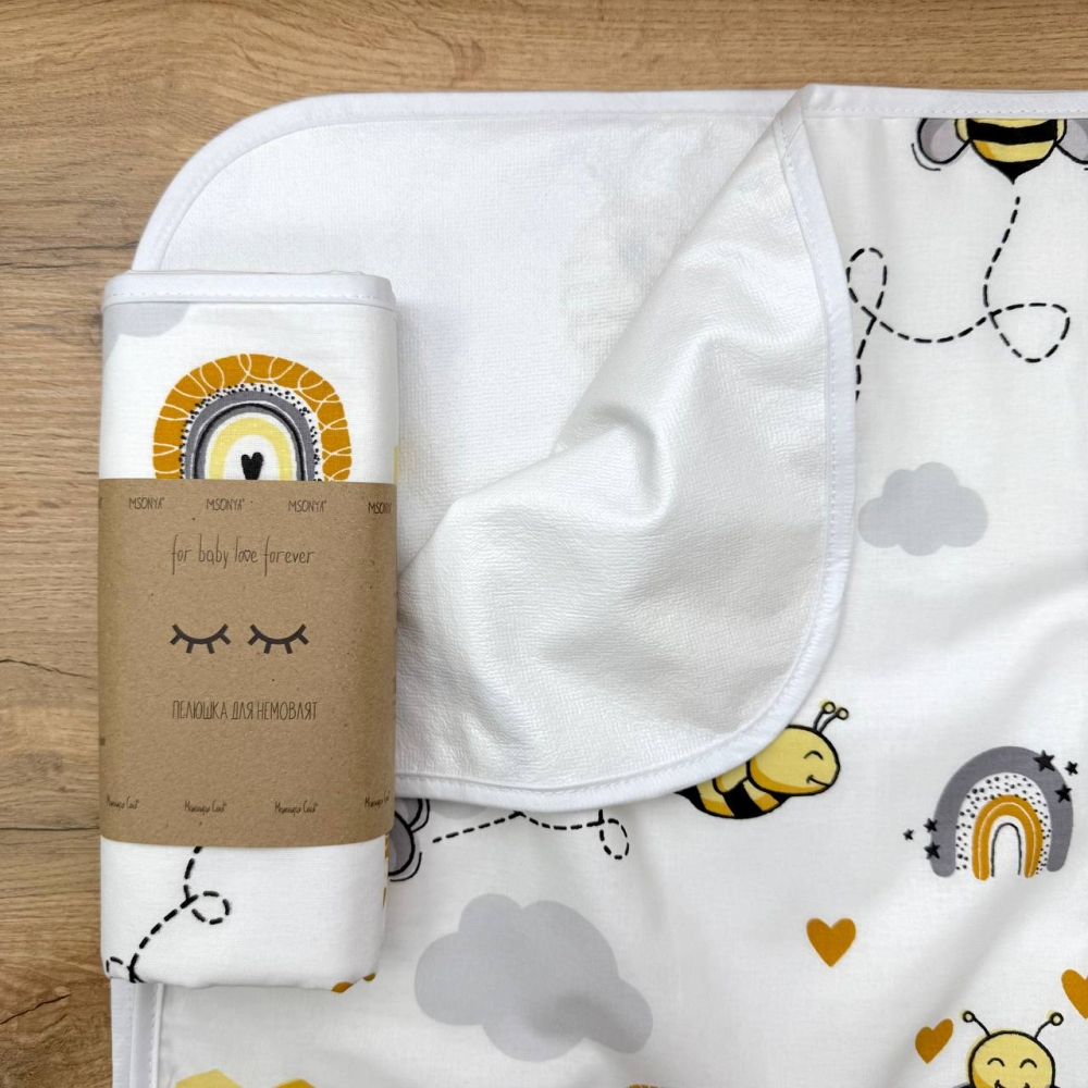 Непромокаюча пелюшка Бджілка сіра (50 на 80 см) поплін/мембрана