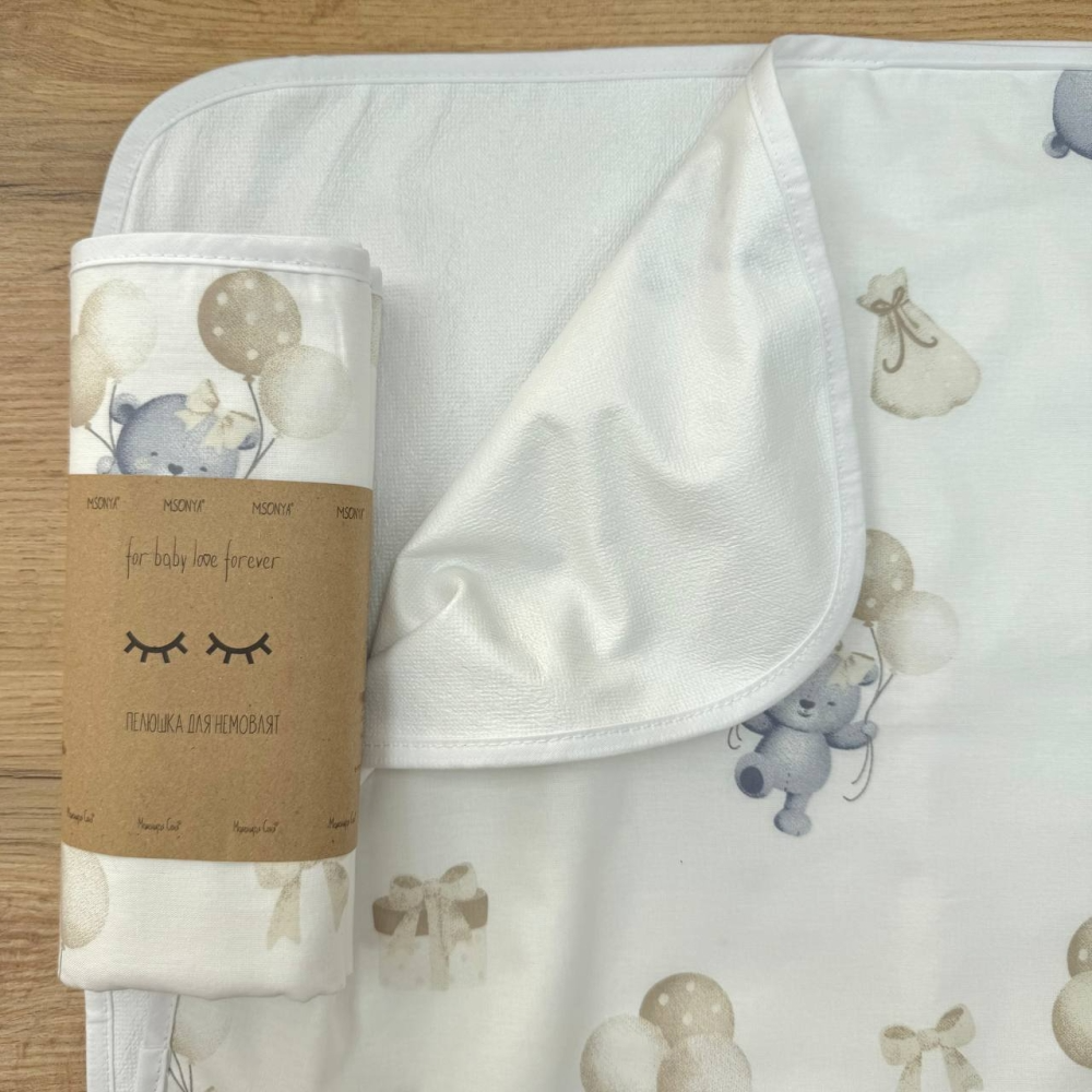 Непромокаюча пелюшка Ведмедик на кульці джинс (50 на 80 см) поплін/мембрана