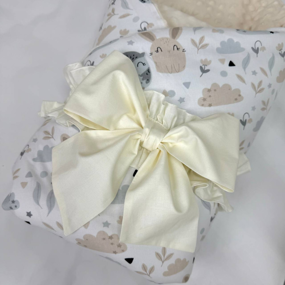 Плед-конверт с одеялом отлично подойдет в тёплое и в холодное время года для деток от рождения . Плед можно сложить в конверт, укутав малыша, скрепить лентой, или бантиком-резинкой (В КОМПЛЕКТЕ) и использовать для прогулок и для выписки. Так же пледом можно укрывать малыша, как одеялком в холодное время года в детской кроватке, коляске, и в автомобиле.