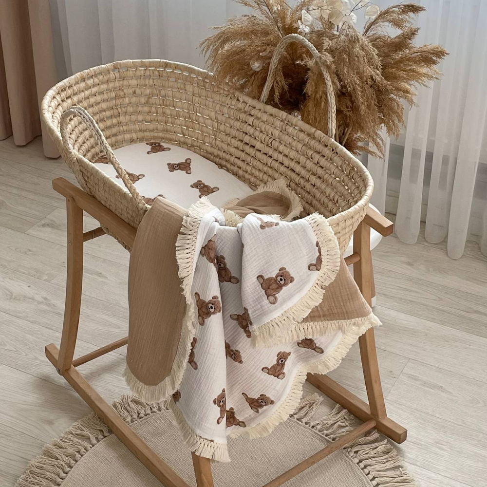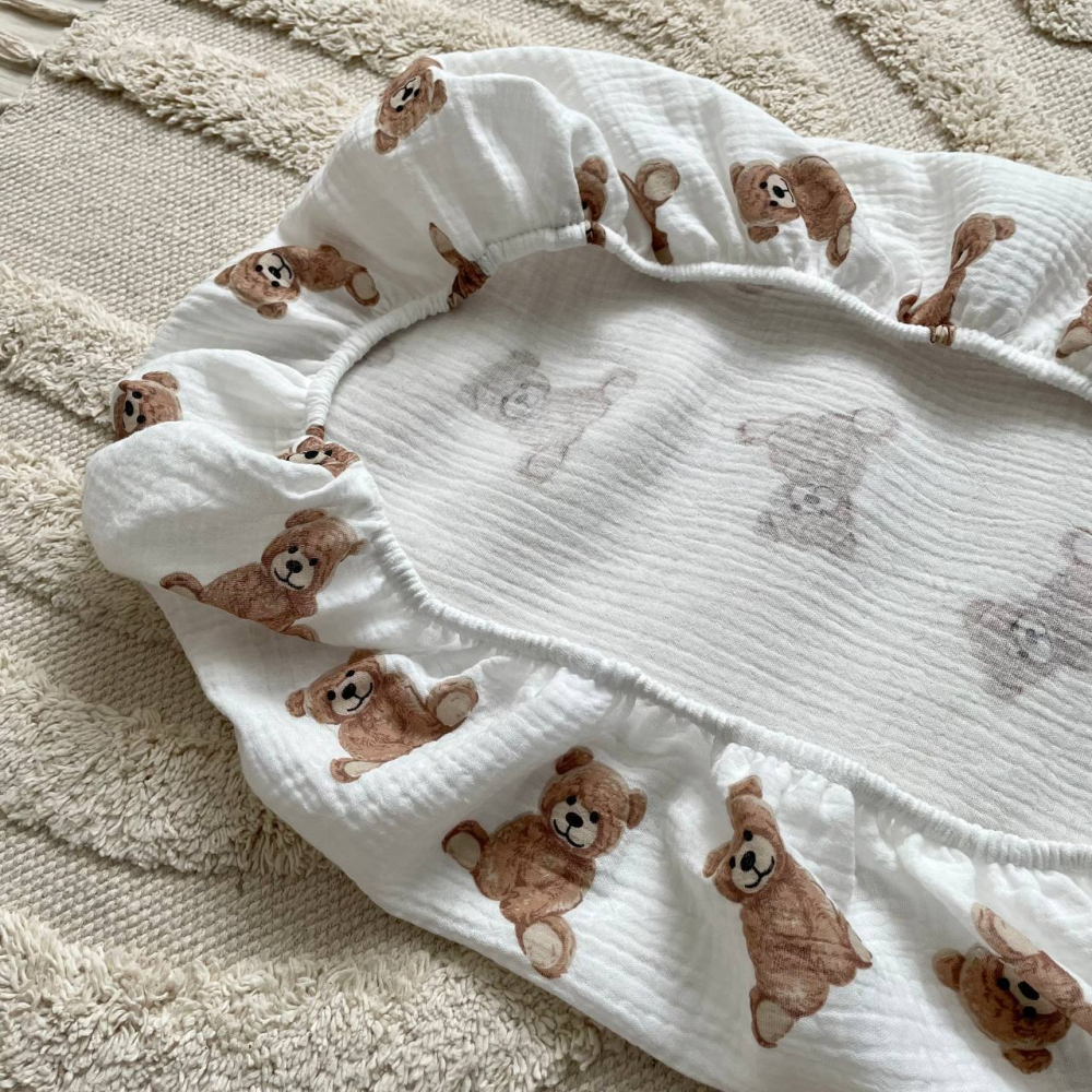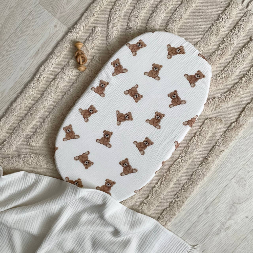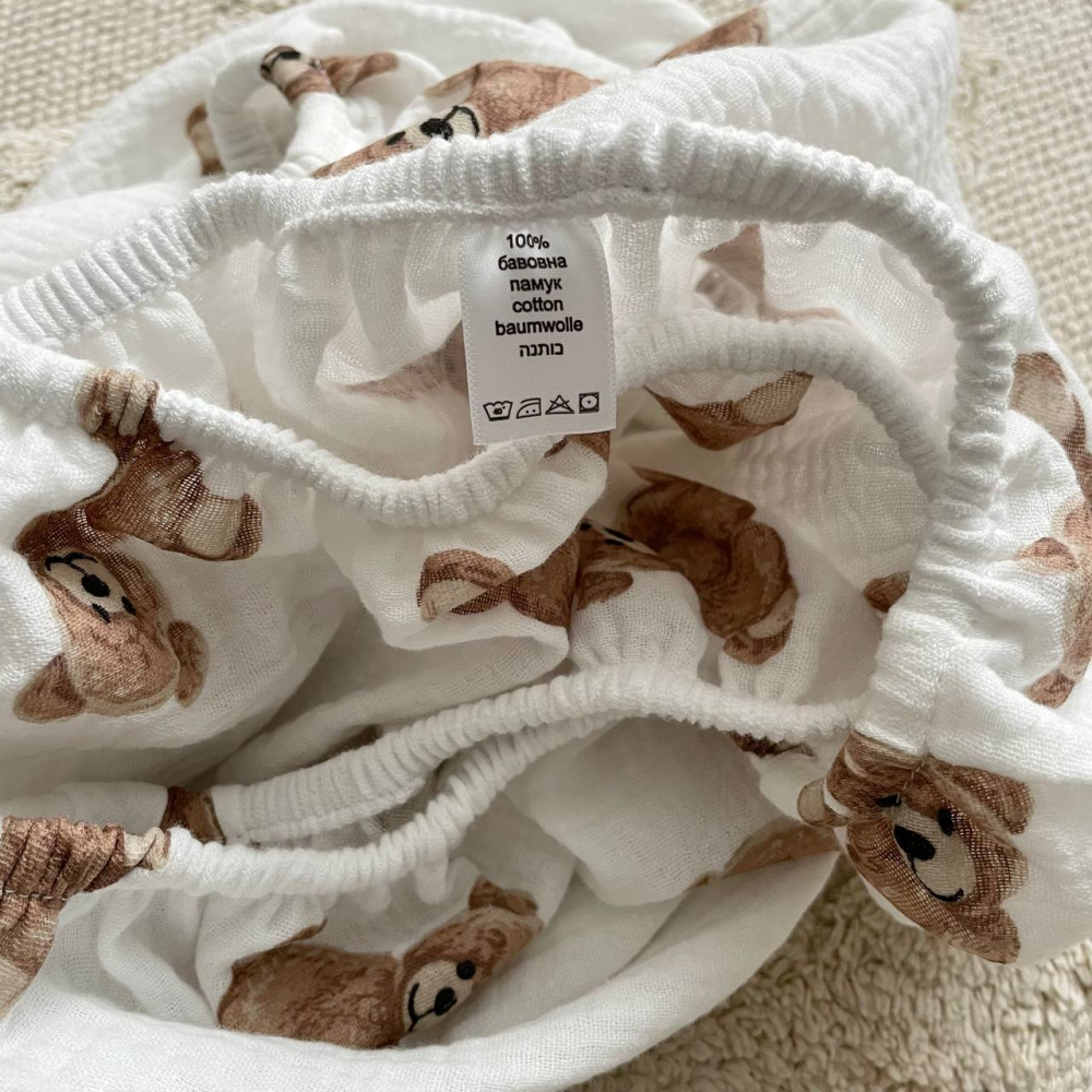 Простинка Ведмедики муслінова в коляску (на резинці) 45х80см