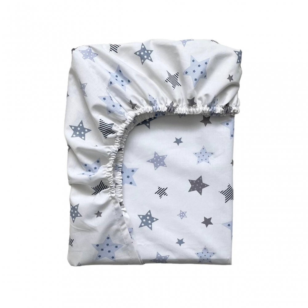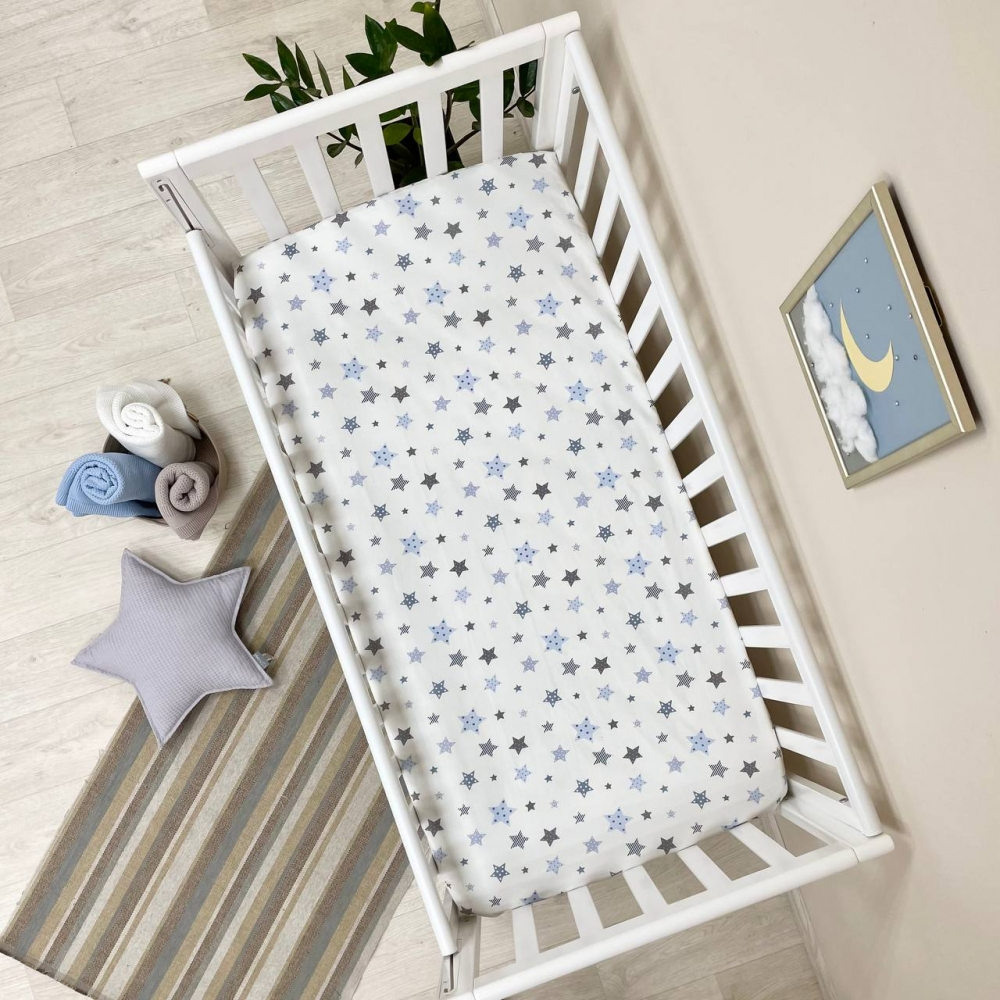 Простынь на резинке "Stars" голубой (поплин) 60х120см