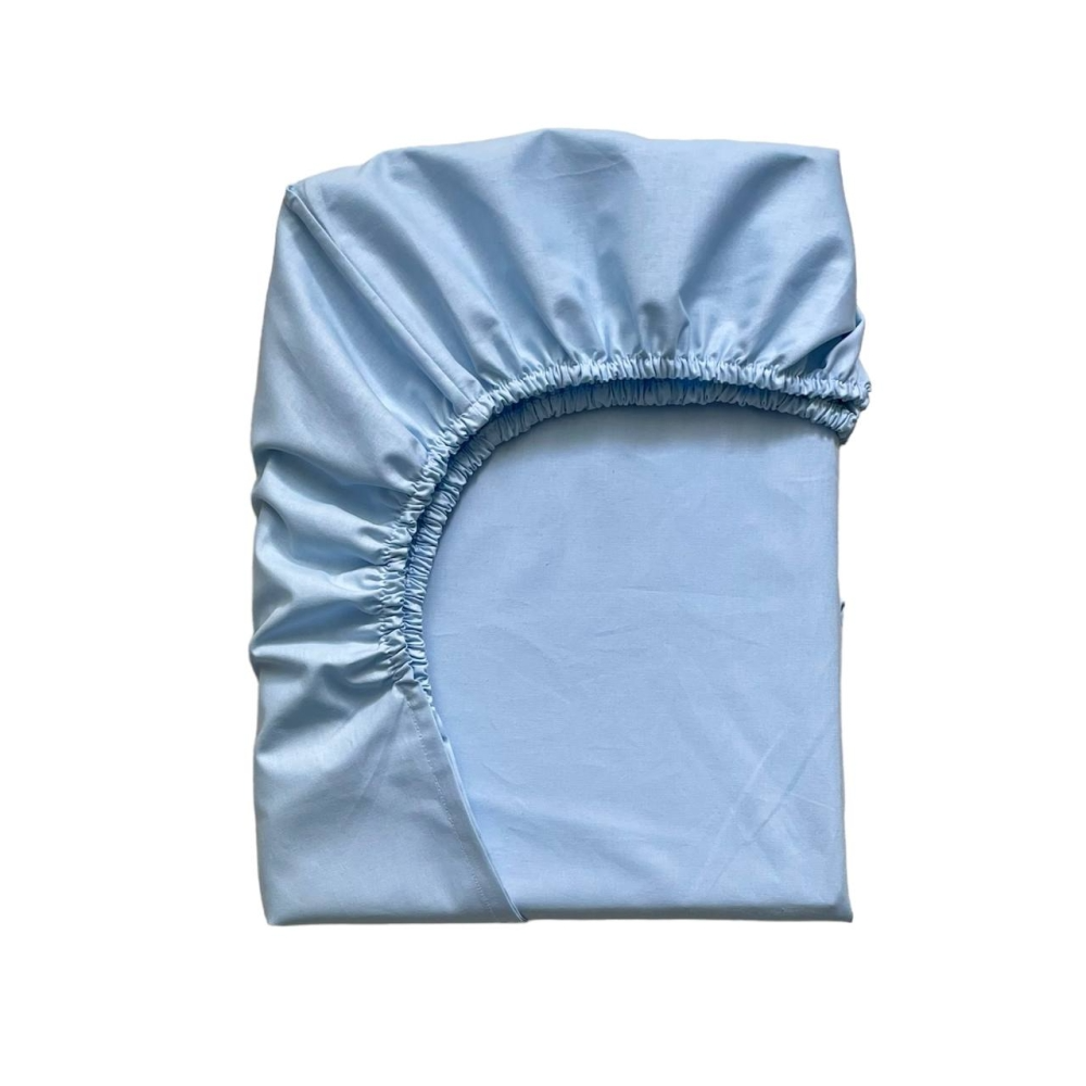 Простынь на резинке голубая (поплин) 60х120см