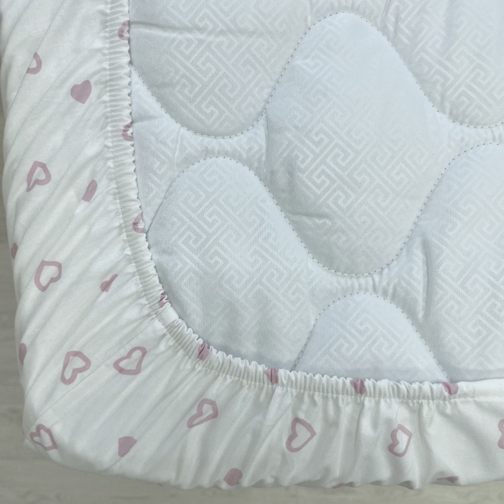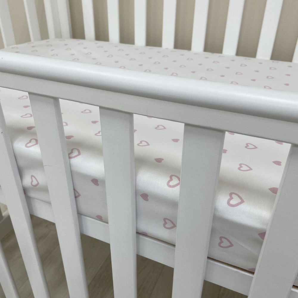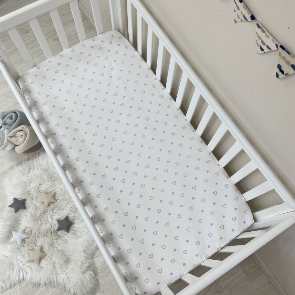 Простынь на резинке "Сердечка" пудра на белом (поплин) 60х120см