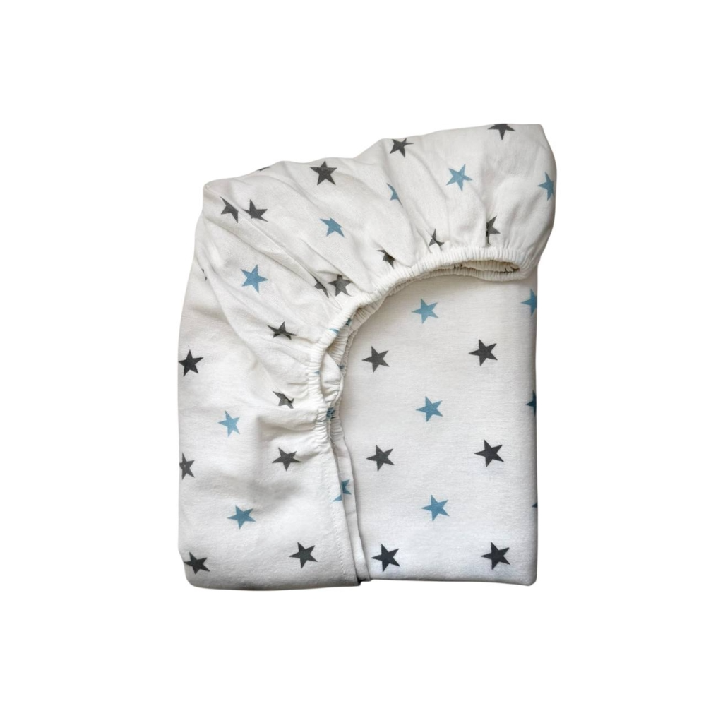 Простынь фланель "Зірка сіро-блакитна" (на резинке) 60х120см