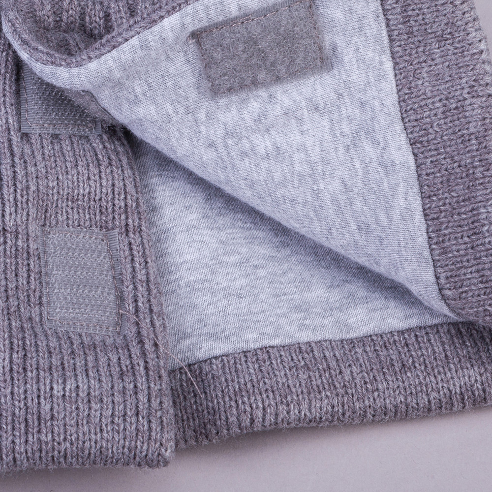 Шапочка имеет трёхслойную структуру: верх вязанный - машинная вязка с оптимальным составом нити (30% шерсть, 70% акрил), что позволяет и сохранить тепло, и предотвратить появление аллергий у ребёнка.