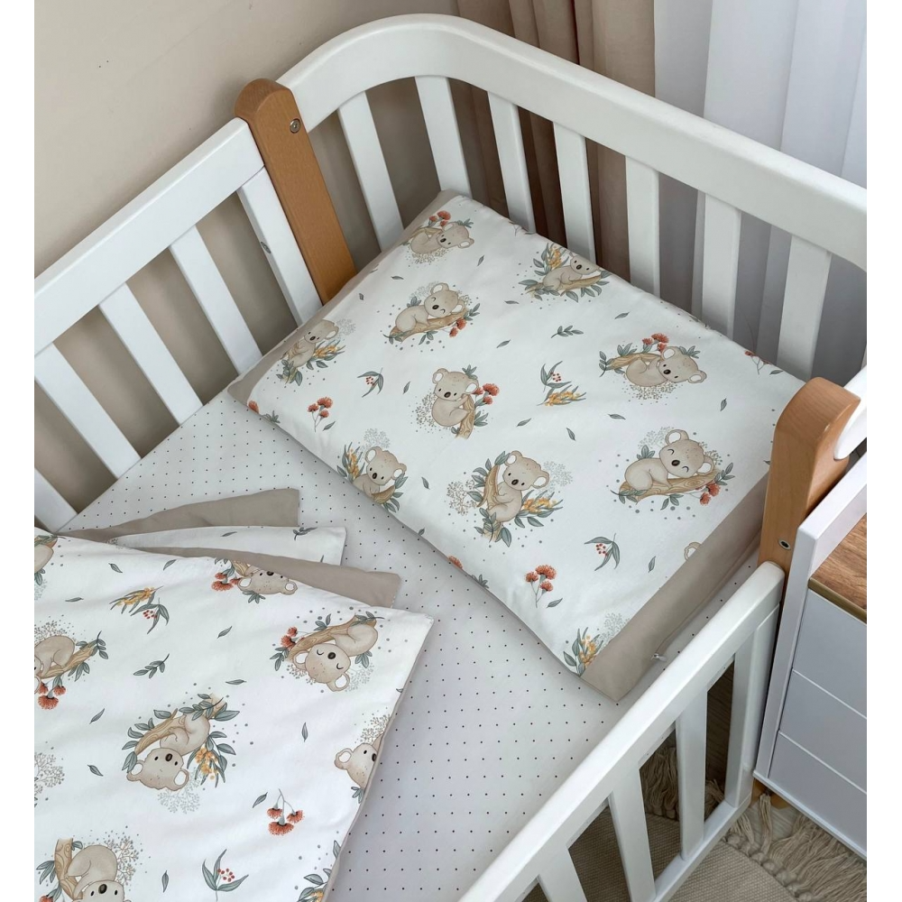 Комплект сменного постельного белья в кроватку состоит из 3х предметов: