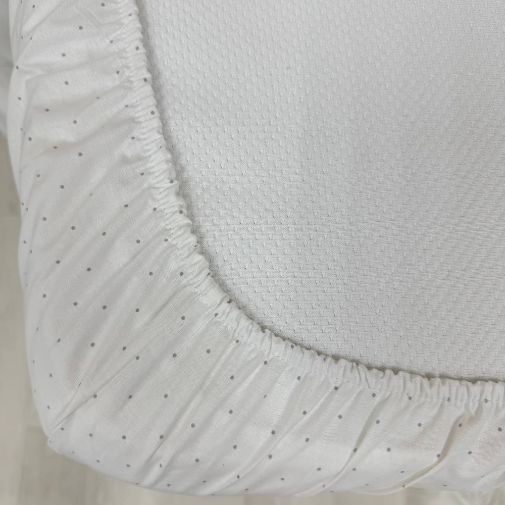 Пододеяльник, наволочка и простынь, пошиты из натурального хлопчатобумажного материала. Простынь на резинке идеально повторяет форму матраса в кроватке. Ребенок будет чувствовать себя свободно, а мамочке можно быть спокойной, что простынка нигде не сомнется.