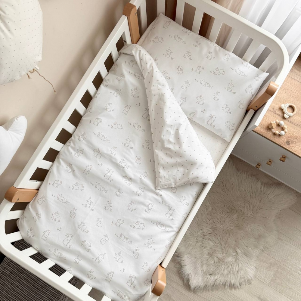 Змінна постіль - Зайчики беж на біл. (3 пр.) "Baby Mix" стандарт/овал