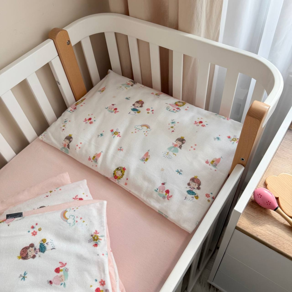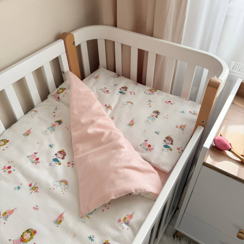 Комплект сменного постельного белья в кроватку состоит из 3х предметов:
