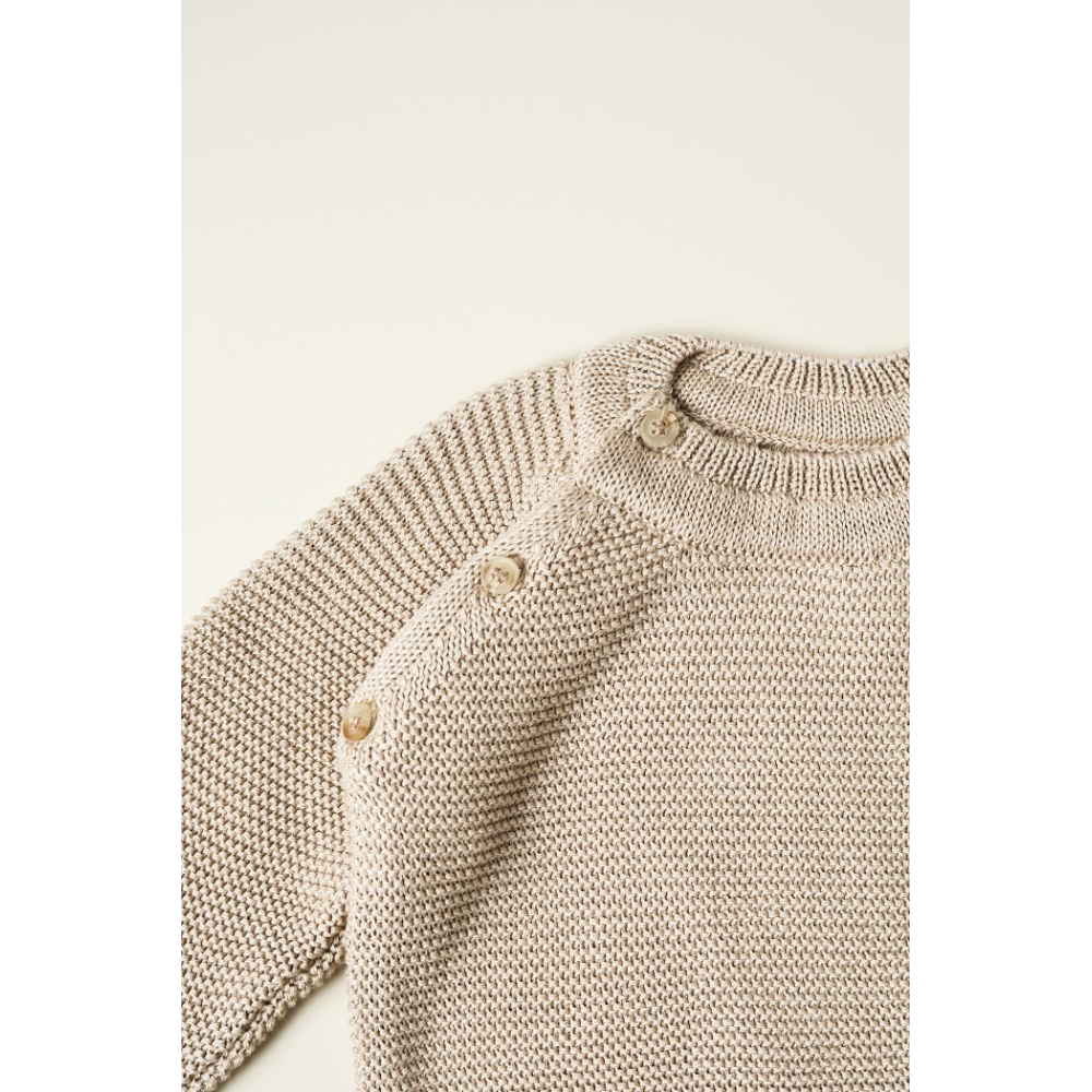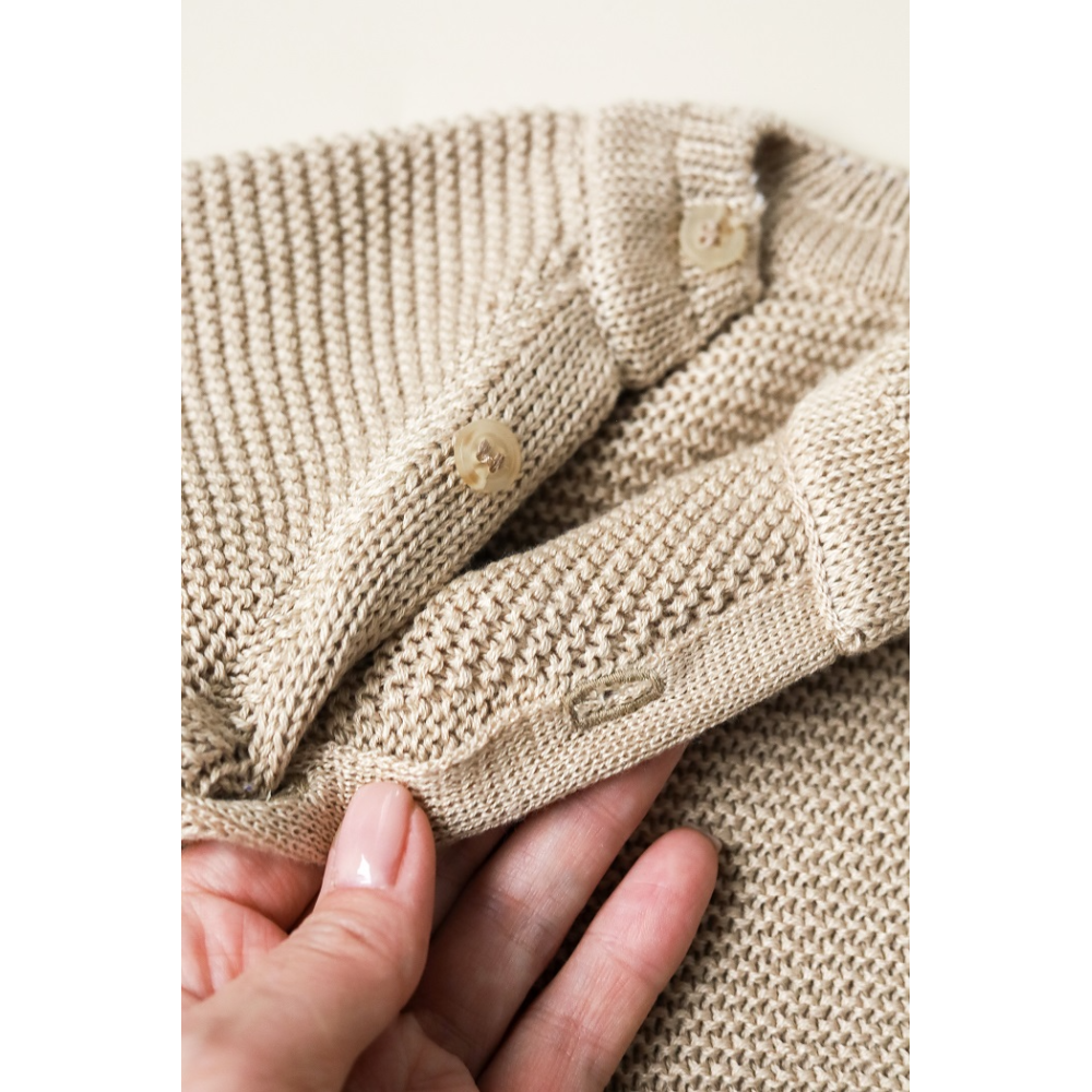 Ґудзики на плечику допомагають легко одягнути светрик, навіть якщо малюк сьогодні не в настрої вдягатися в принципі. Спинка трохи подовжена, зручні розрізи по боках і охайна нашивка роблять модель дуже акуратною та «дорослою» на вигляд.