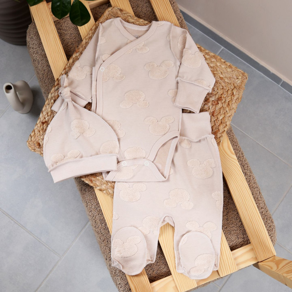 Комплект 433-934 Mickey беж (боді, повзуни, шапочка), інтерлок
