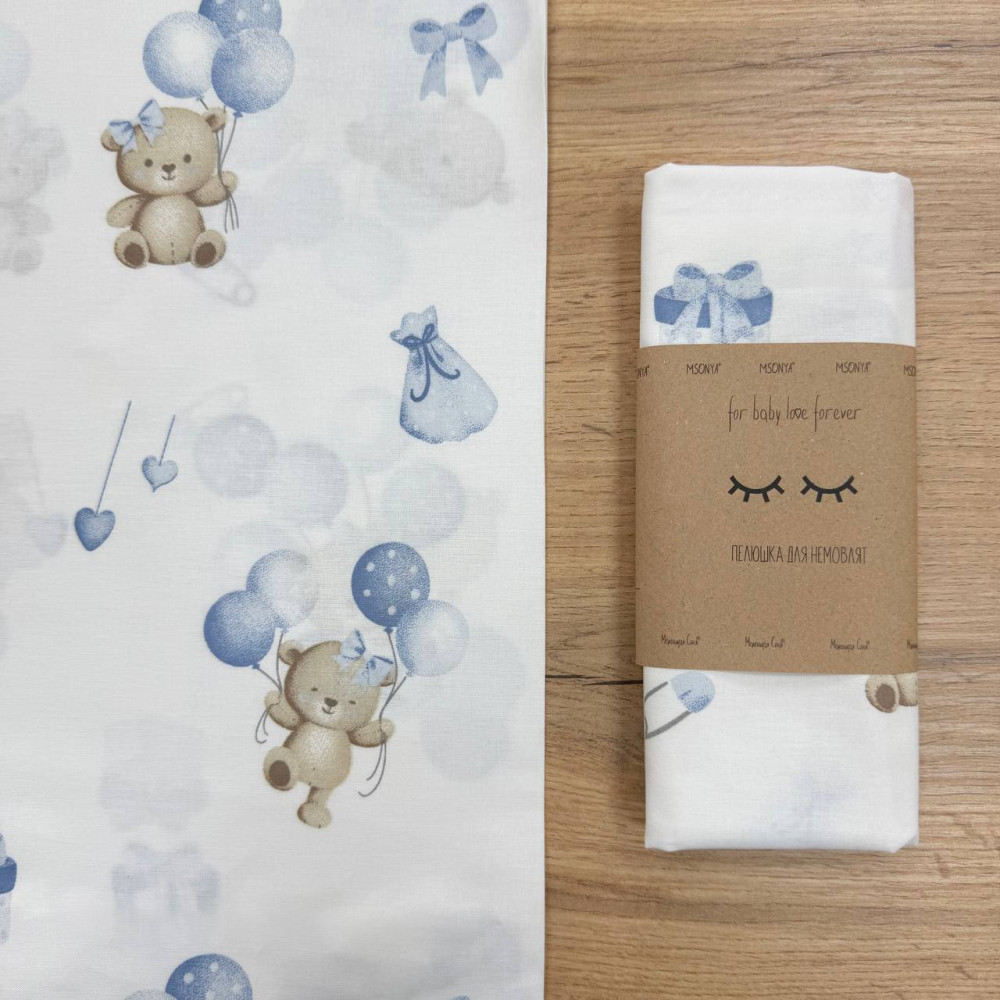 Пеленка бязь Ведмедики на кульці блакитний (100х80 см)