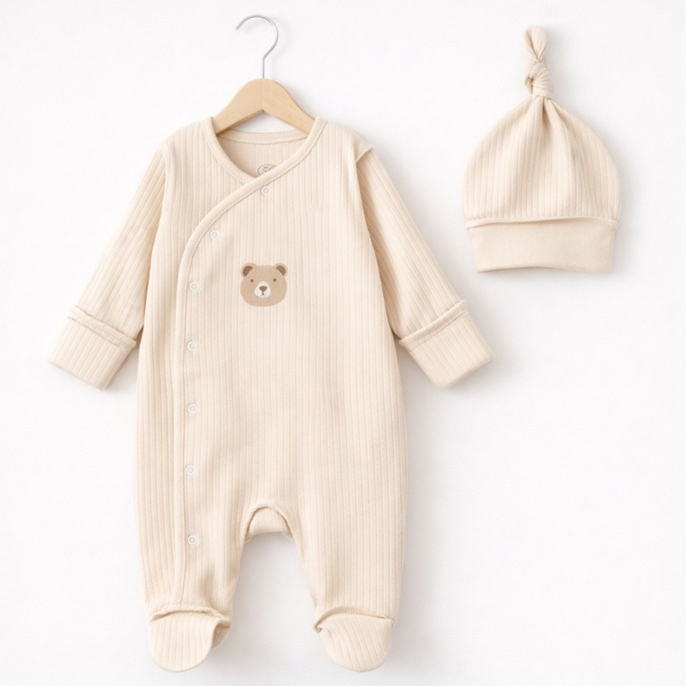 Комплект 130-106 беж (чоловічок, шапочка), рубчик
