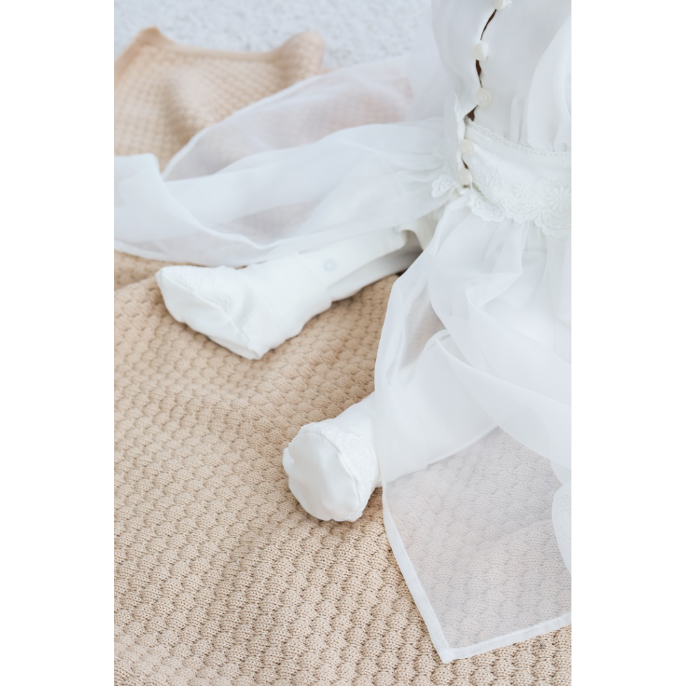Вони ідеально доповнюють образ маленької принцеси у чоловічку-сукні “Viola”, наче завершальний штрих до першої великої події в її житті.
