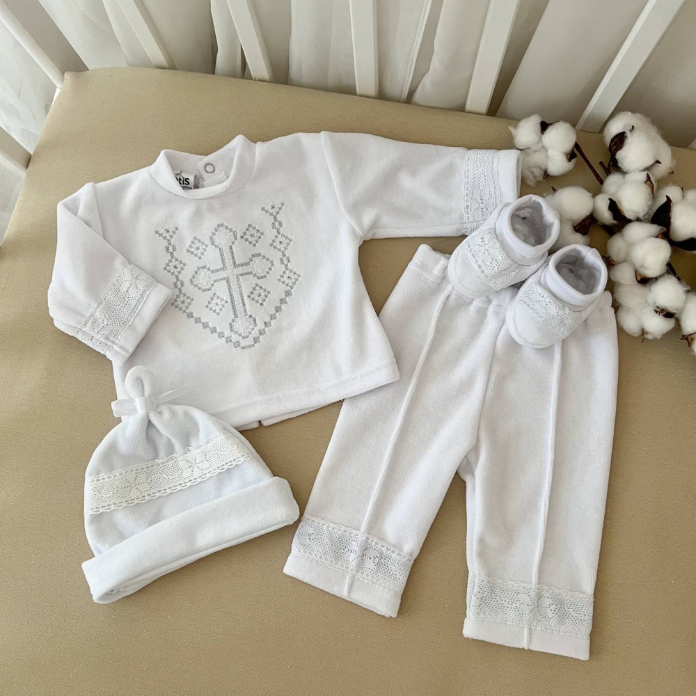 Костюм "Янгол-3 В" д.р. білий (кофта, штани, шапочка, пінетки) велюр