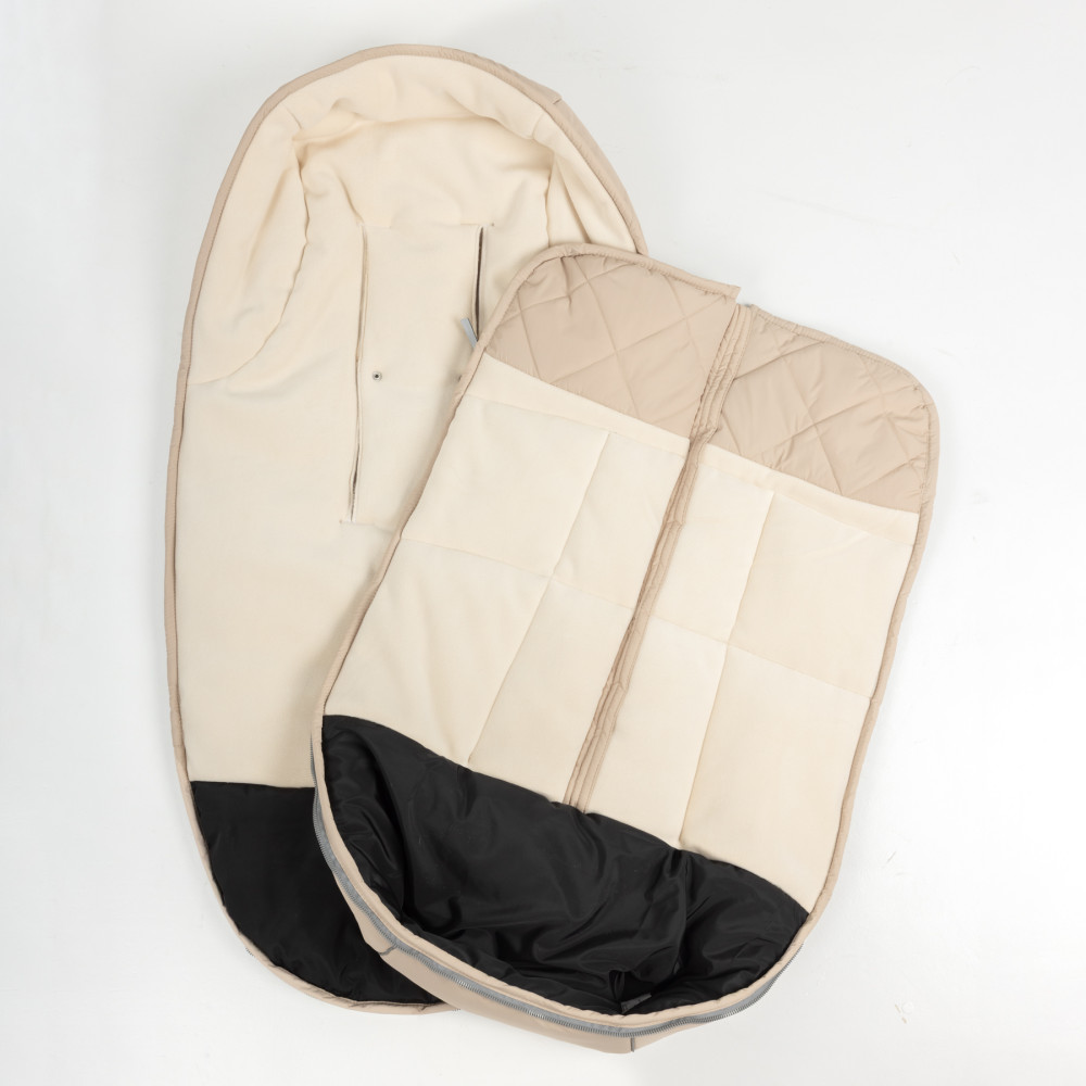 Всередині, у місці контакту з чобітками, є захист від забруднення - плащова тканина чорного кольору, яку можна просто протерти вологою серветкою. У цій частині конверту теплоту флісу компенсує додатковий шар силіконізованого синтепону, щільністю 200 гр/м2.