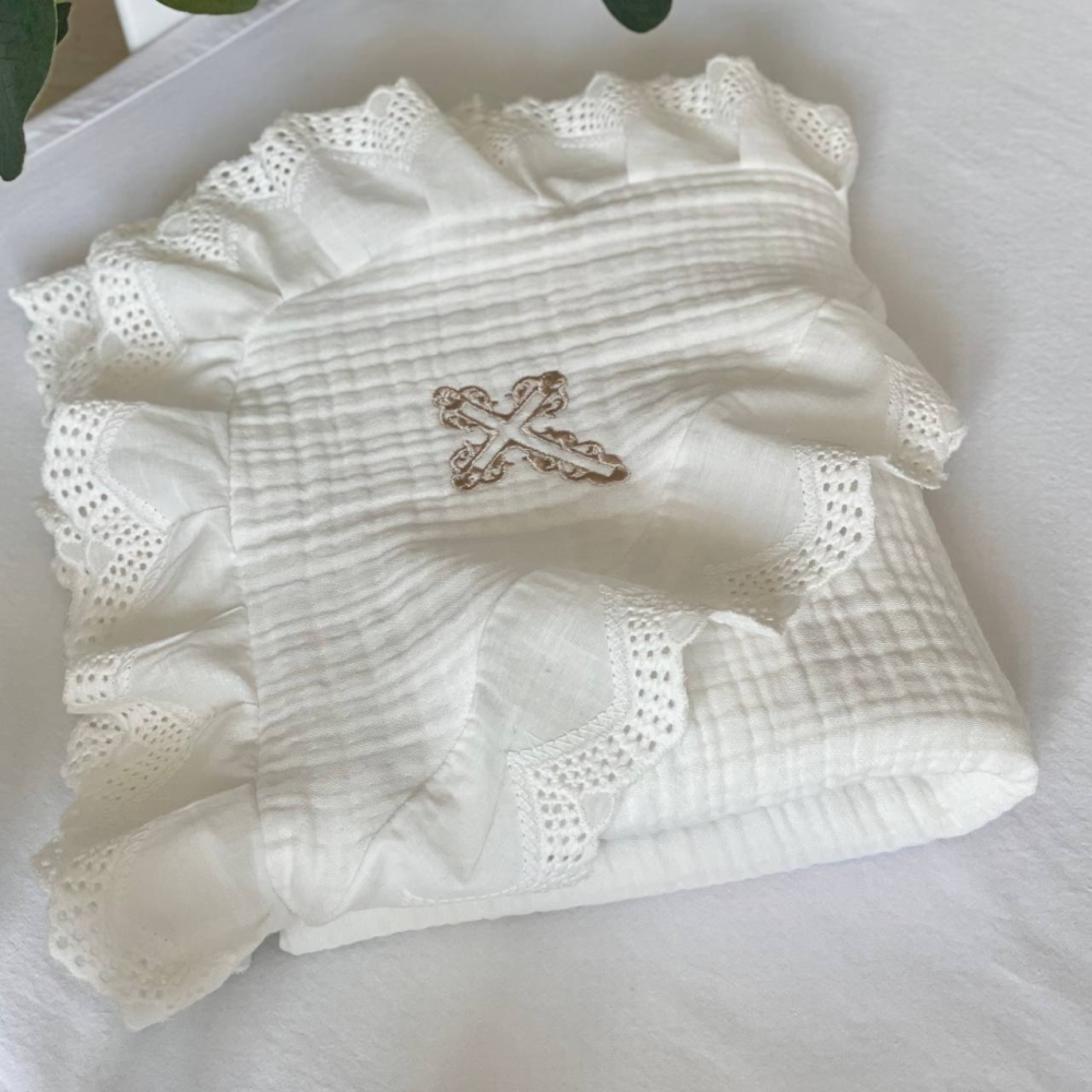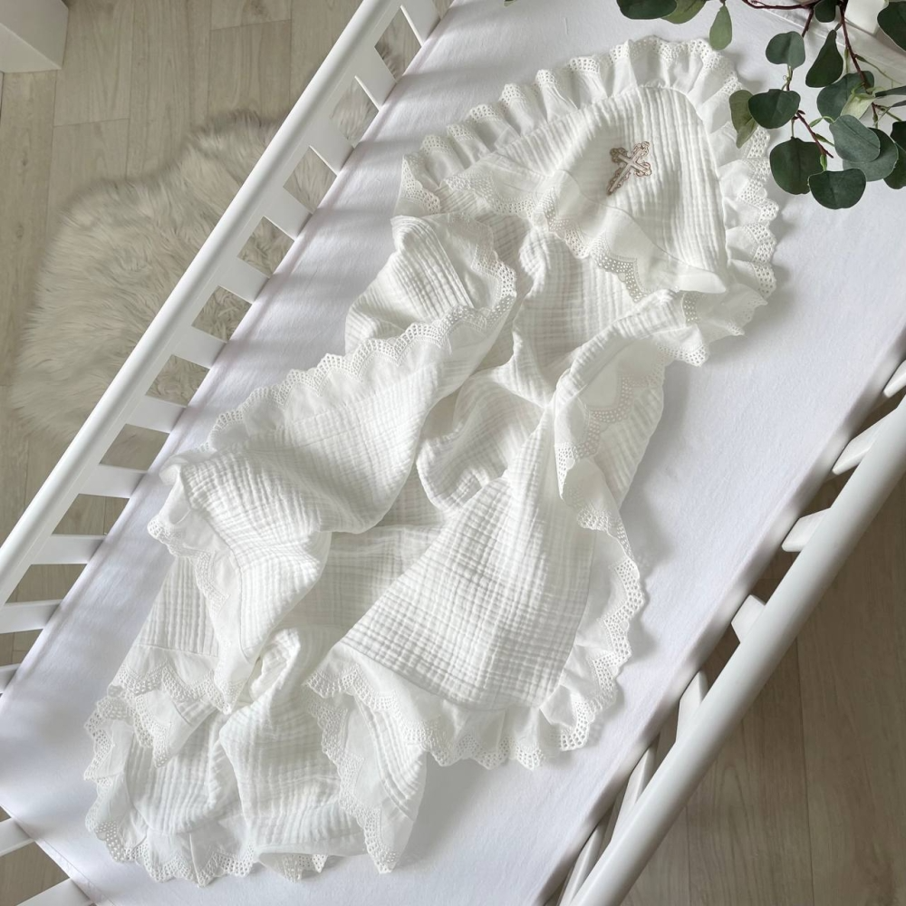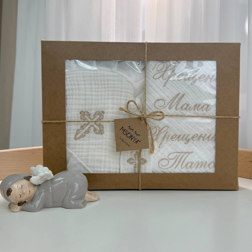 Набір для хрещення Елеганс муслін (крижма, серветки, мішечок) 100х80 см