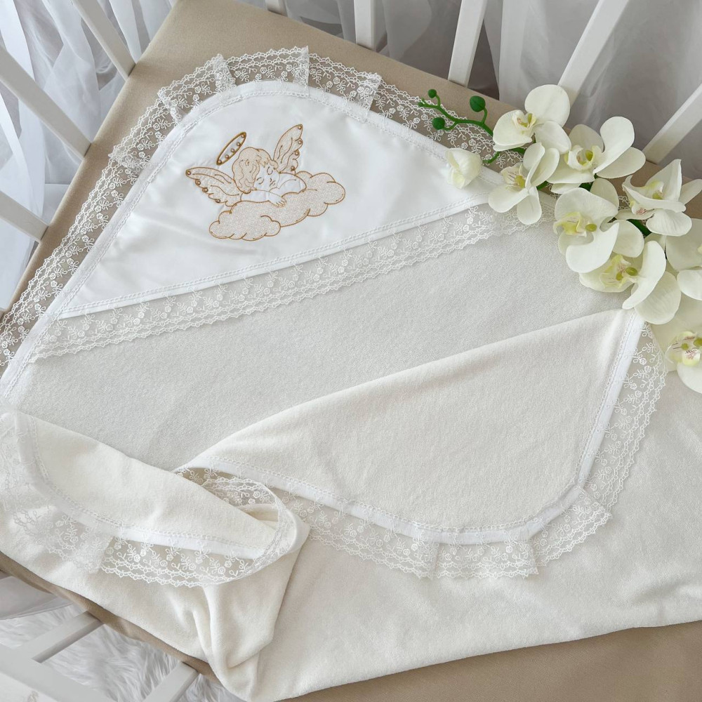 Крижма "Небесний оберіг" молочна махра, 75 на 90 см