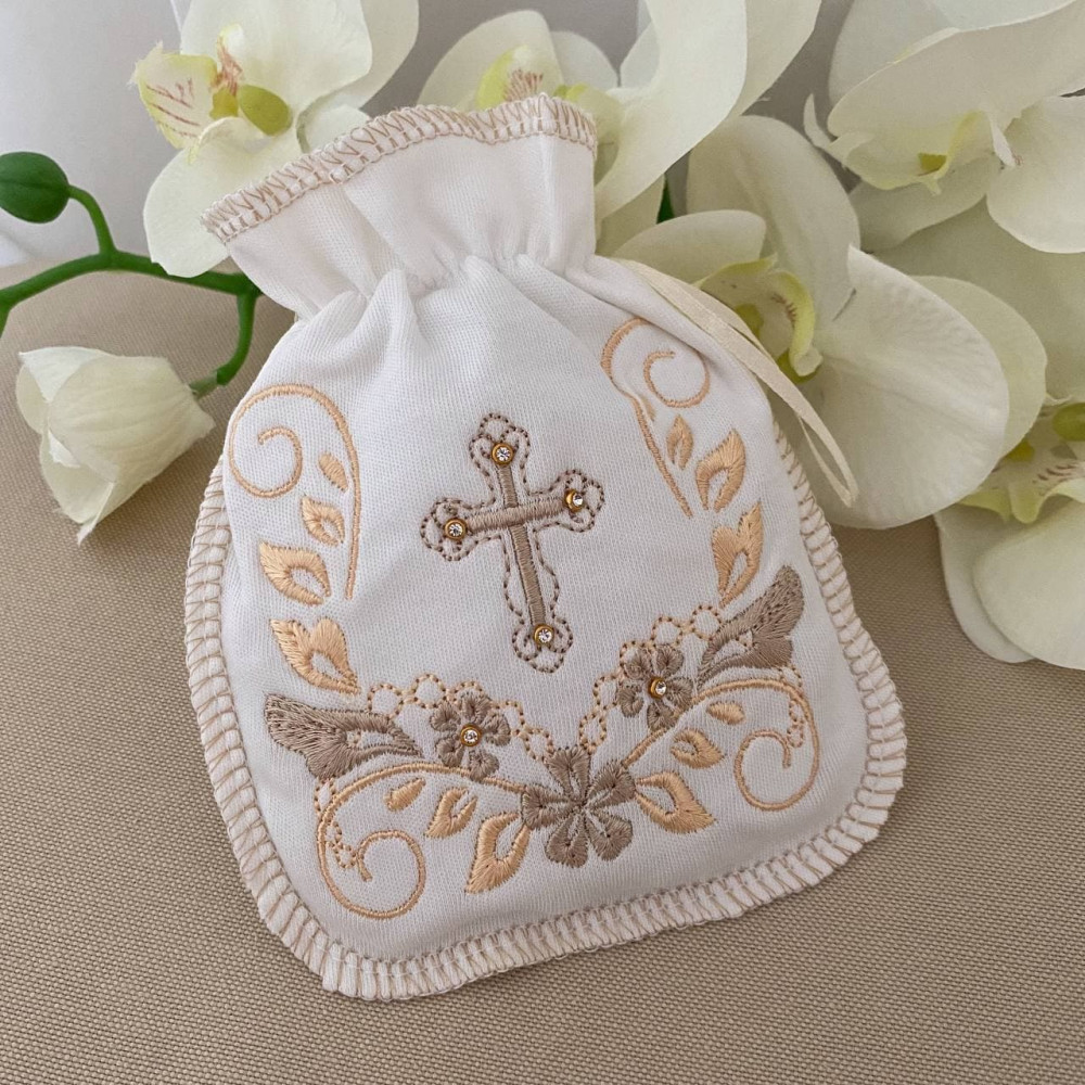 Мішечок для першого локону "Скарбничка янгола" інтерлок (молочний/кава)