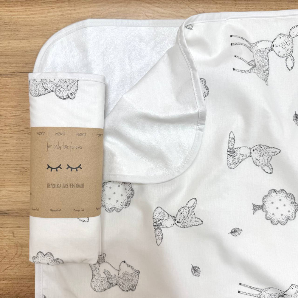 Непромокаюча пелюшка Звірята сірі (50 на 80 см) поплін/мембрана
