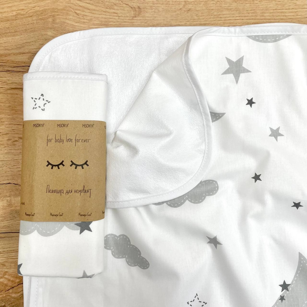 Непромокаюча пелюшка Хмаринки сірі з місяцем (50 на 80 см) поплін/мембрана