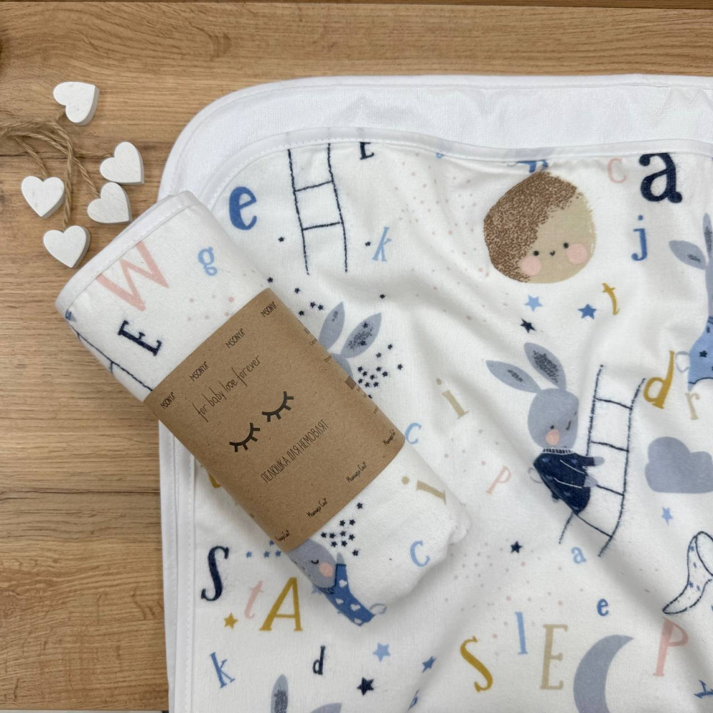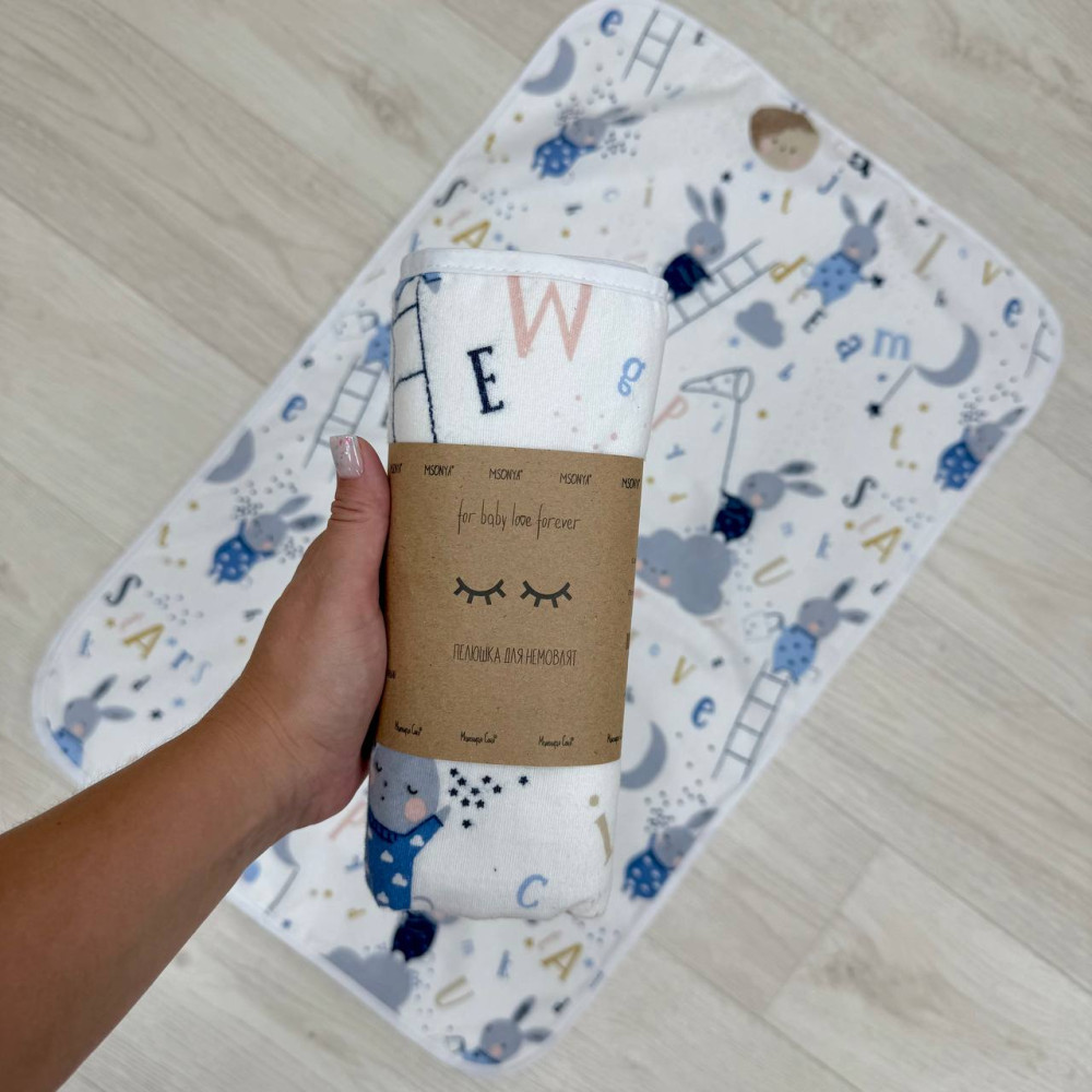 Непромокаюча пелюшка тепла Зайці на драбинці блакитні (50 на 80 см) фланель/мембрана