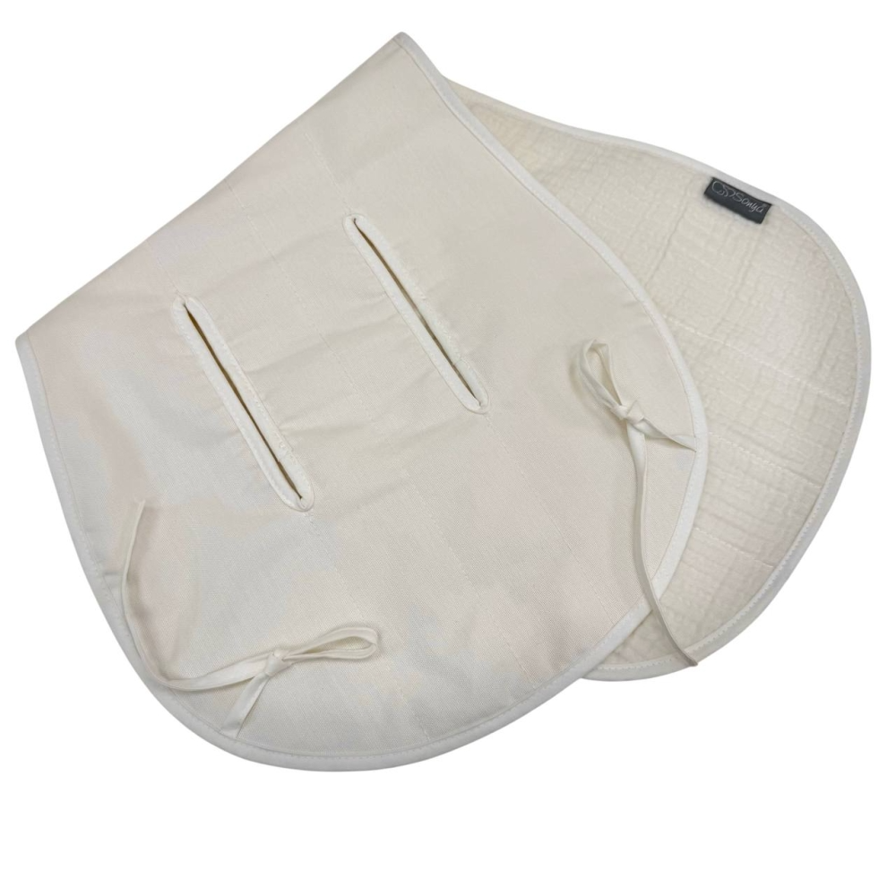 Одна сторона виконана з 4-шарового мусліну, з їнша -з водонепроникної тканини.