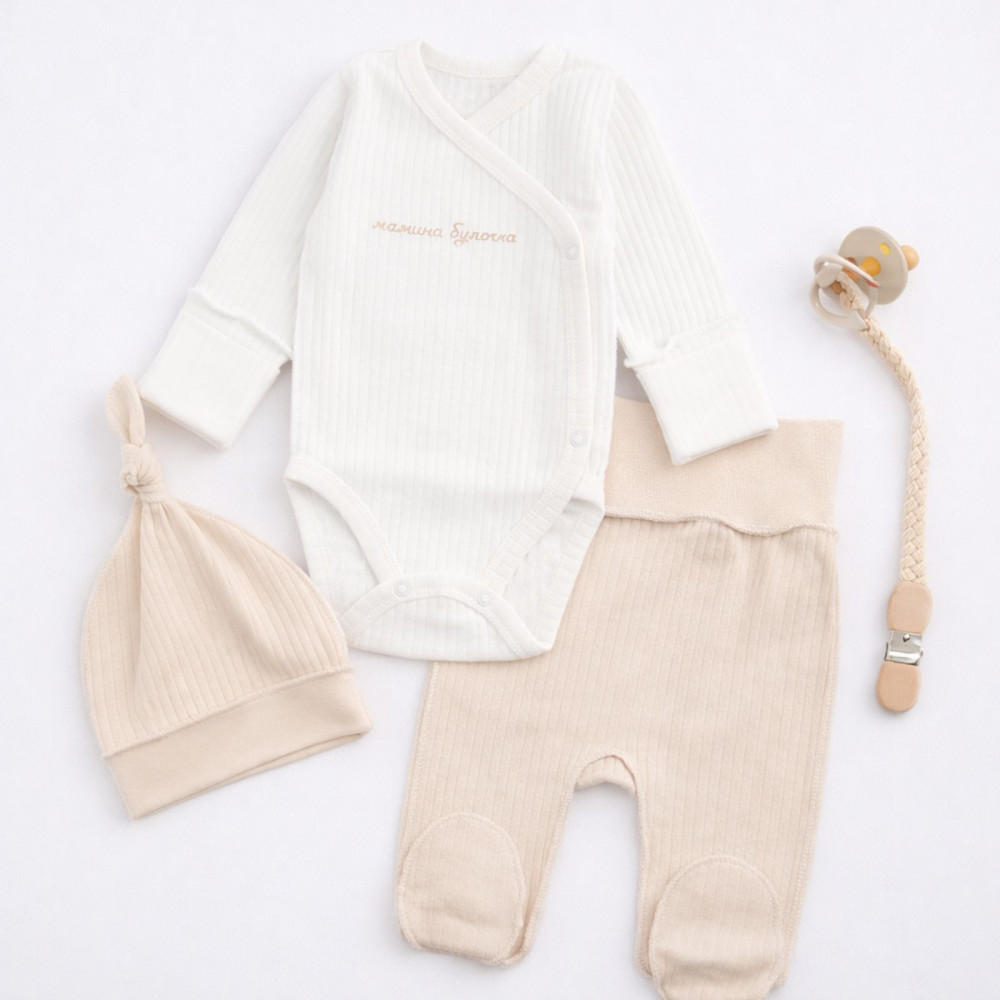 Комплект 433-106 Мамина булочка (боді, повзунки, шапочка), інтерлок рубчик