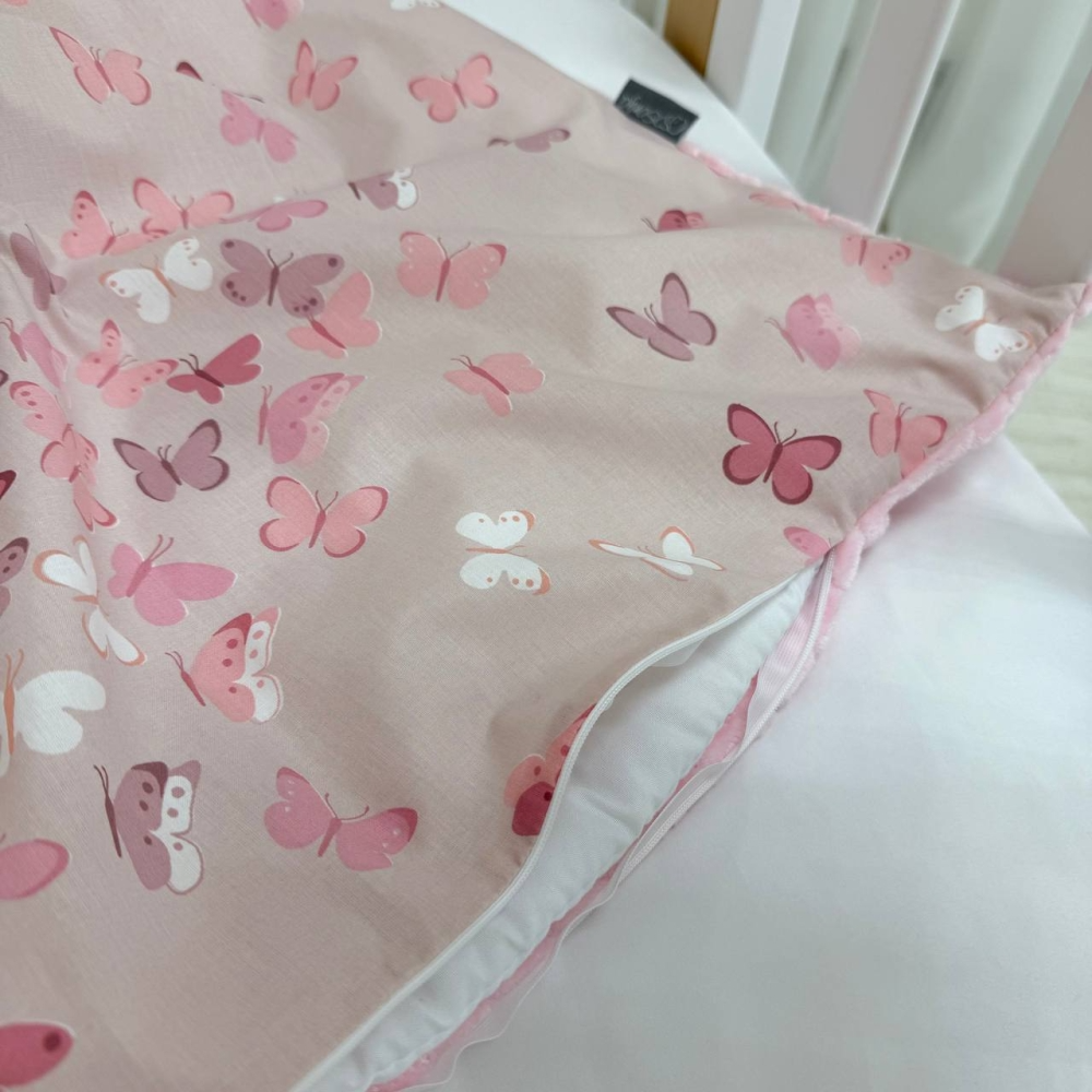 Плюш Minky - дуже ніжний матеріал з коротким ворсом, має м'яку текстуру "бульбашок". За комфортом і властивостями збереження тепла не поступається шерсті і набагато тепліше флісу. Поплін - це тканина з натуральних волокон, ідеально підходить для дитячої постільної білизни.