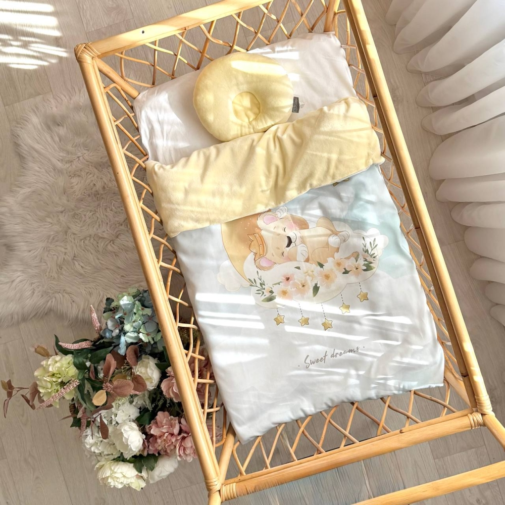 - білизна постільна, аксесуари та дитячий текстиль (в тому числі: рушники, подушки всіх видів, кокони-позиціонери, матрасики у люльку/ліжко/візочок, пледи, ковдри, конверти, простирадла, наволочки, півковдри, пелюшки та європелюшки, балдахіни та тримачі до них, козирки до візочків, москітні сітки, бортики, косички, наматрацники, чохли, окремо або в комплектах);