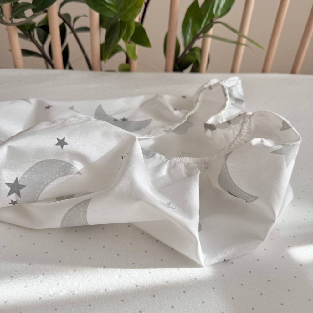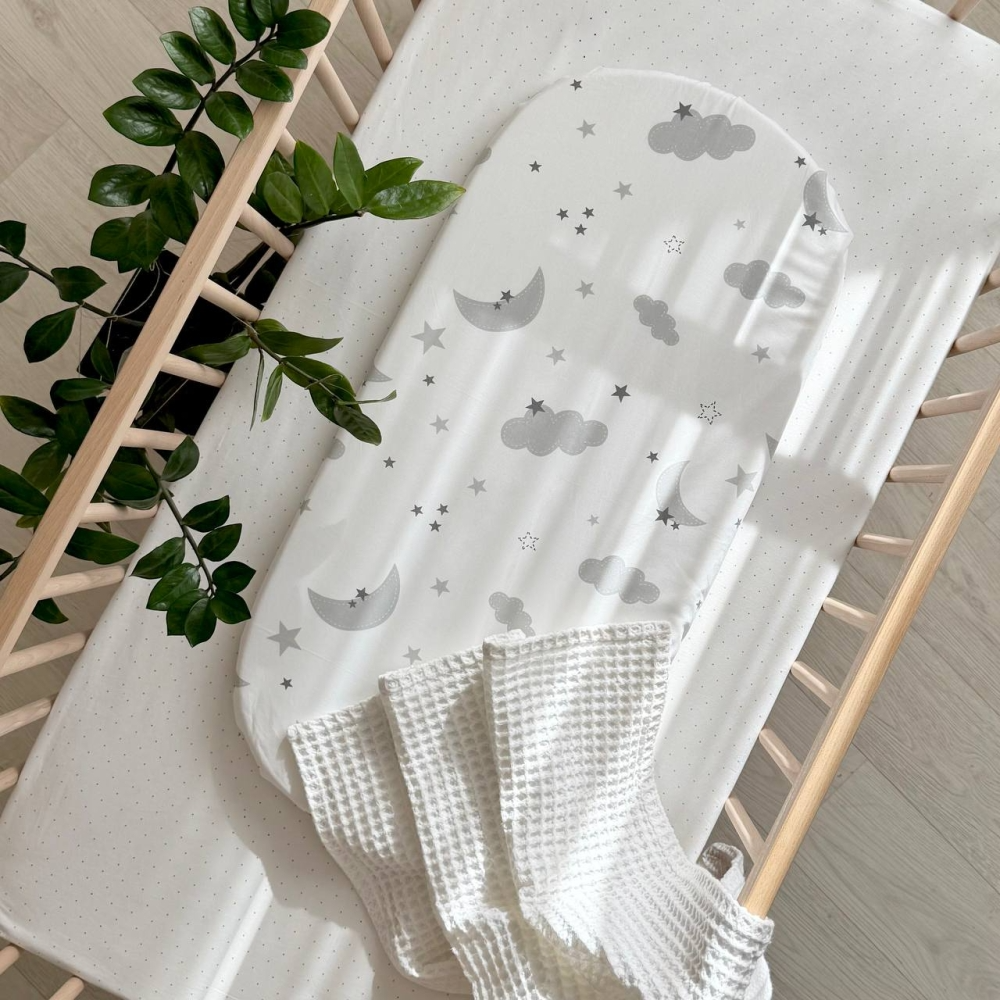 Простинка Хмаринки сірі з місяцем в коляску (на резинці) 45х80см