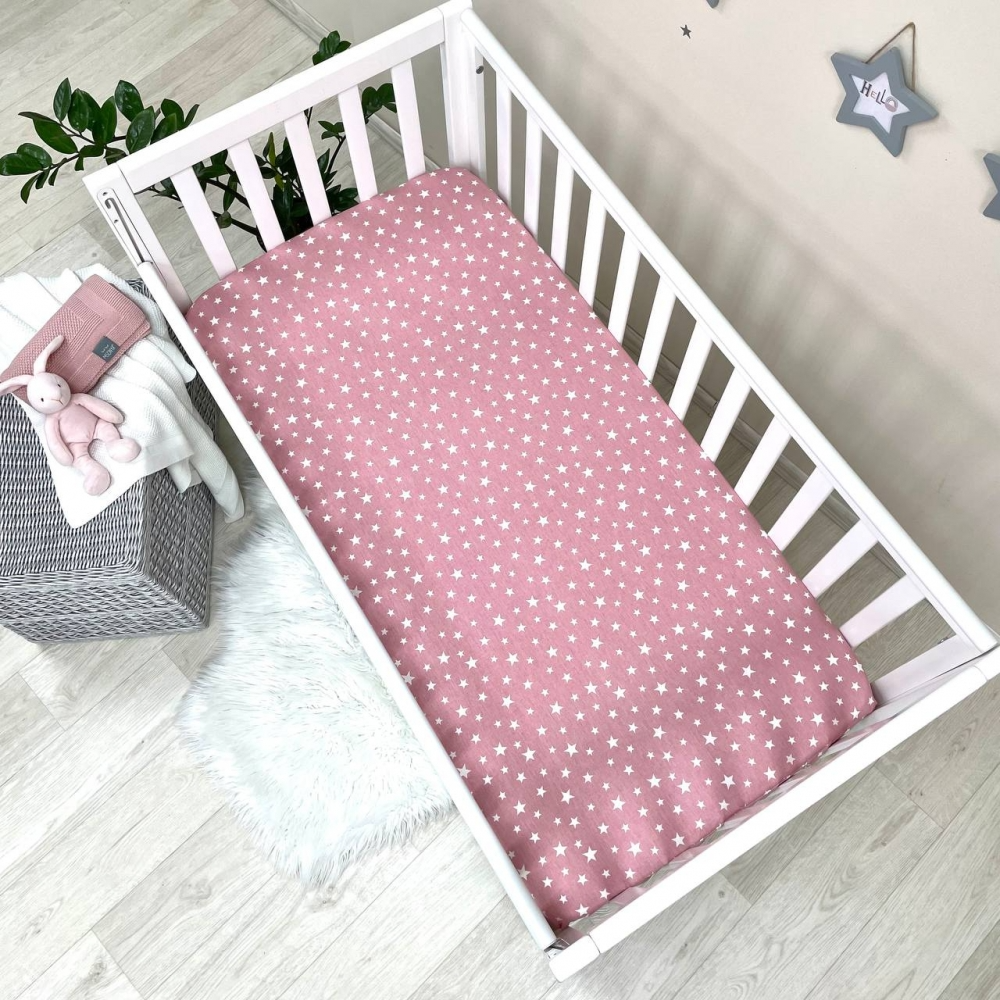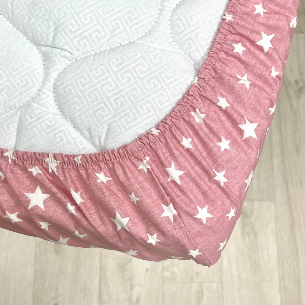Простинка на резинці "Зірка розсип" біл. на рож. (поплін) 60х120см